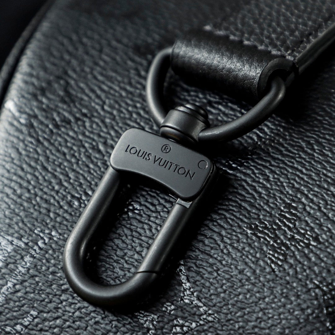 The versatile Keepall Bandoulière 35 is made from Monogram Midnight coated canvas with matching black-leather trim. Matte-black hardware, including the zipper, enhances its sleek aesthetic. A removable, adjustable leather strap allows for shoulder or cross-body wear, while rolled-leather top handles ensure comfortable hand carry.